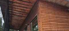 Ulkoseinälaudat on tervattu lautoina. Tervaa ihan semmoisenaan on 1 kerros. Pellitykset ovat kuparia. Kuparin valintaa puolsi kestävyys ja ettei pellityksiä tarvitse koskaan käsitellä.
