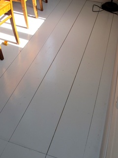 50-luvun keittiökalusteet on hankittu Ruotsista. Se on restauroitu ja maalattu pirteällä sinisen-turkoosilla värillä. Keittiön vanha puuliesi on ahkerassa käytössä. Lisäksi omistajat ovat halunneet säilyttää vanhan kellarin, joten keittiön pöydän alla olevassa kellariluukussa voi säilyttää kesän satoa.