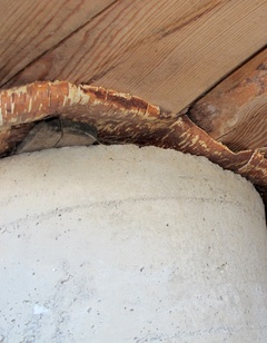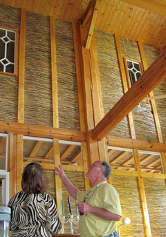 Seinien eristeeksi on käytetty kevytsavea (n. 250-300 kg/m3) ja seos on valettu liukuvaluperiaatteella pystykannattimien väliin ehjänä. Seinät on valmistettu käyttäen erilaisia eristemateriaalisekoituksia. Yksi on kutterilastu, toinen meriruokosilppu, kolmas rukiin olkisilppu ja neljännen seinän eristeenä on Leca-soraa( halk. 8-20 mm). Mutta yhteistä kaikille seoksille on se, että oman pihan savi on nostettu edellisvuonna "talveksi tekeytymään".